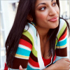 Description: A young woman with long dark hair and heavy eyebrows.